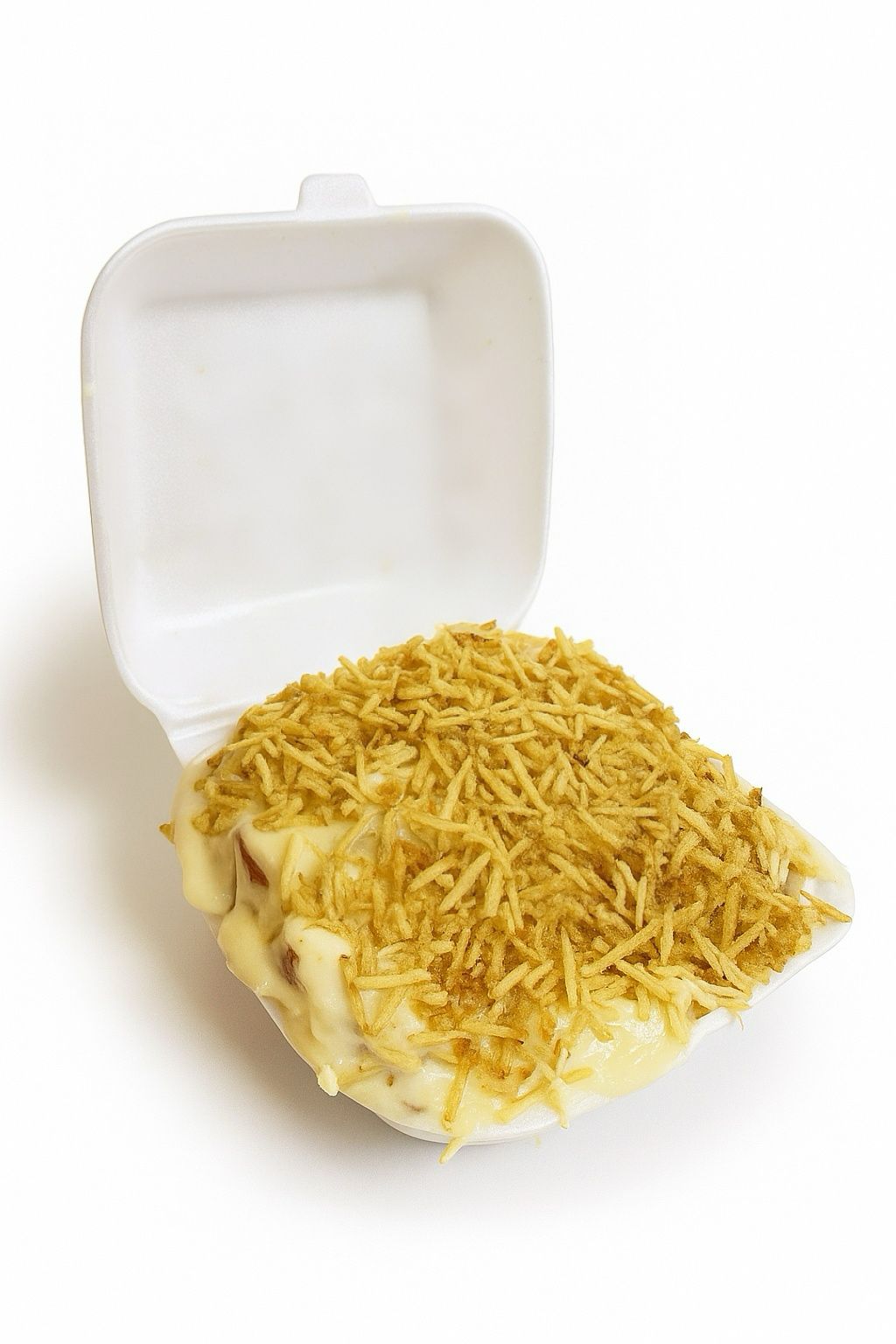 Salchicha, papas, cebolla, queso.