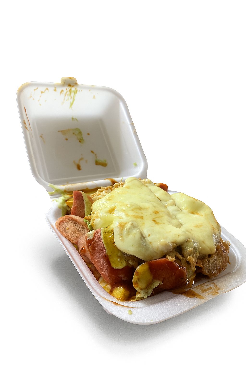 Papas, queso, salchicha.