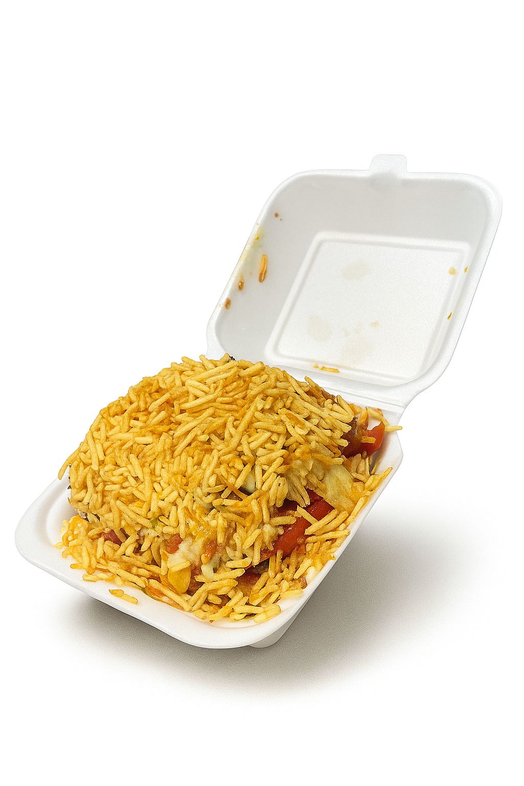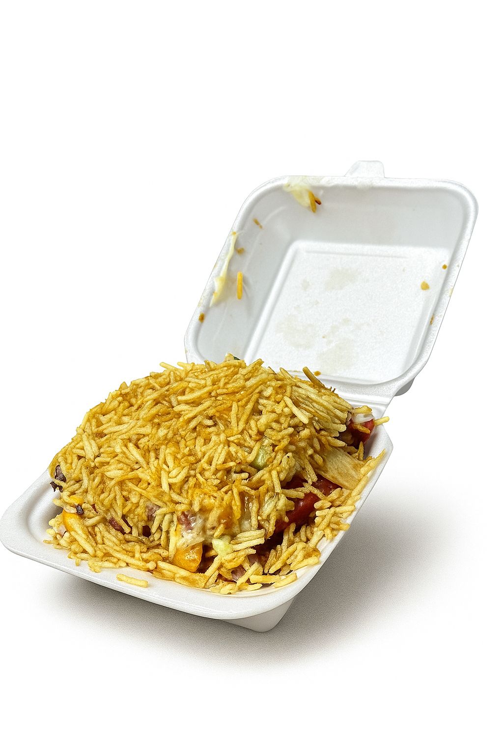 Papas, pollo, carne, maicitos, queso.